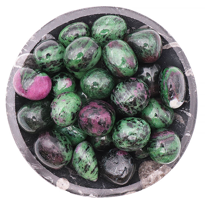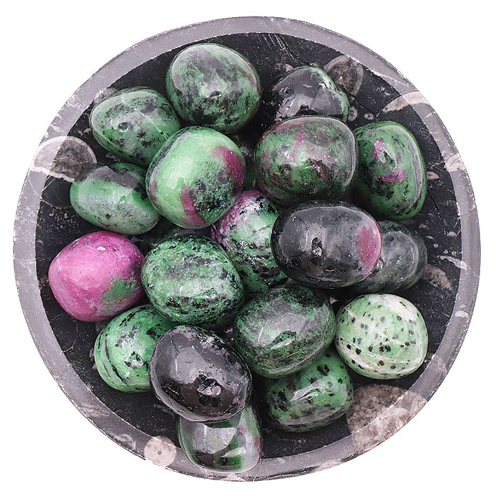Zoïsite ruby bracelets. Faceted beads and rolled ruby zoïsite stones.