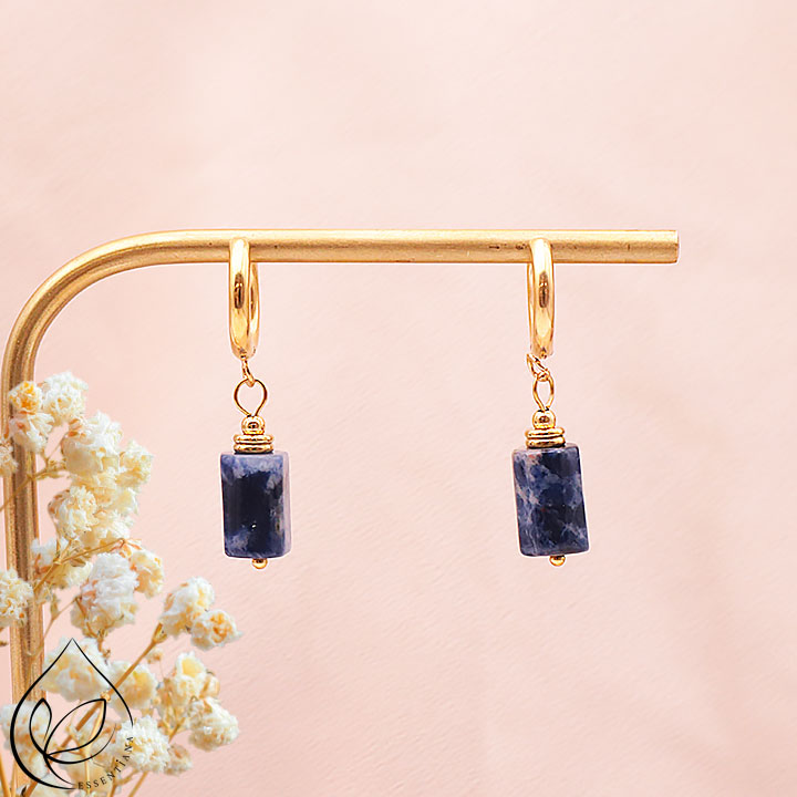 Sodalite bracelets and pendants. Pebbles, faceted pearls and sodalite stones. Sodalite figurines and pyramids.