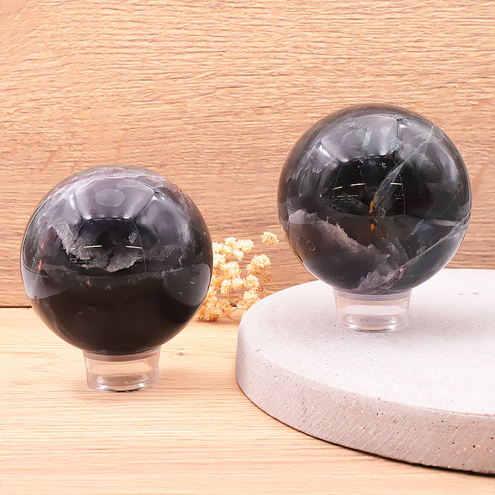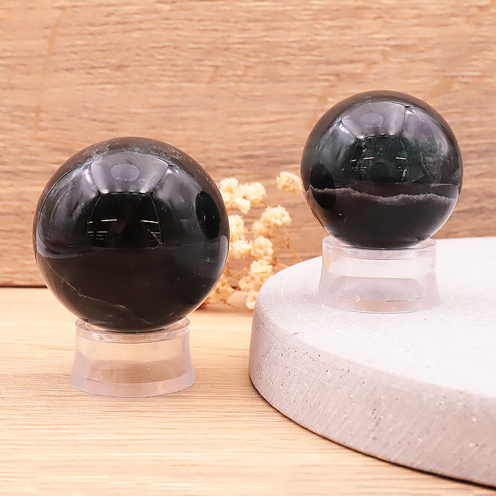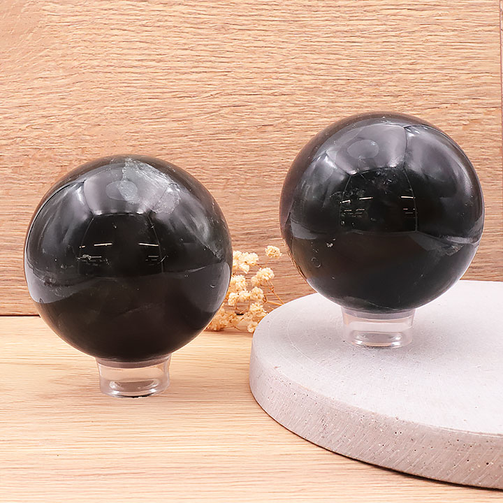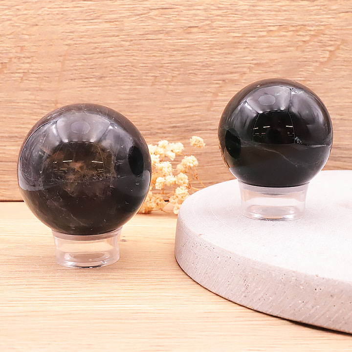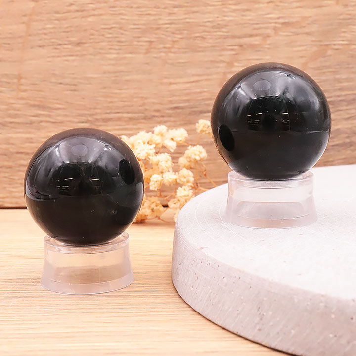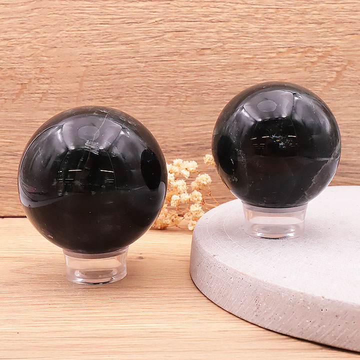 Rock crystal spheres, rose quartz, amethyst, tiger's eye, obsidian, labradorite, malachite, black tourmaline, stone moon,...