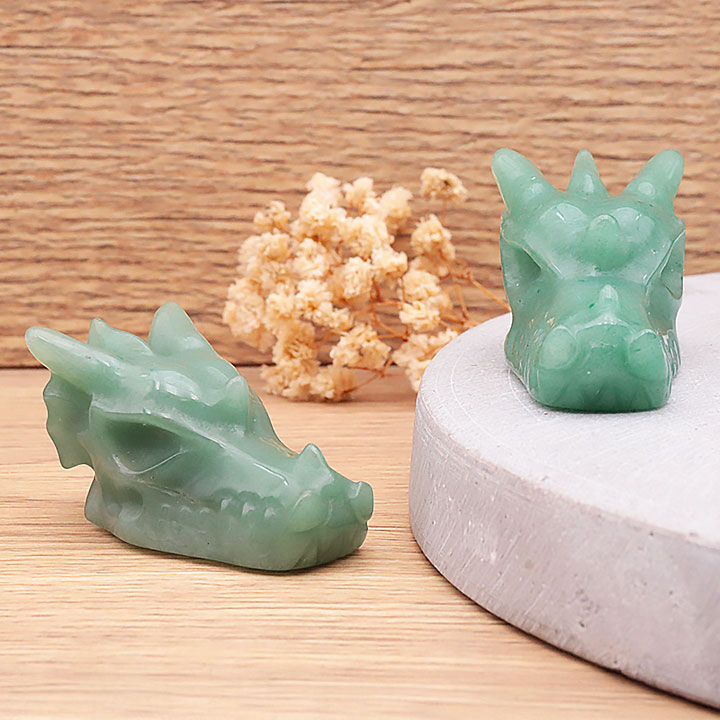 Dragon head 30mm green aventurine A (set 2 pieces)
