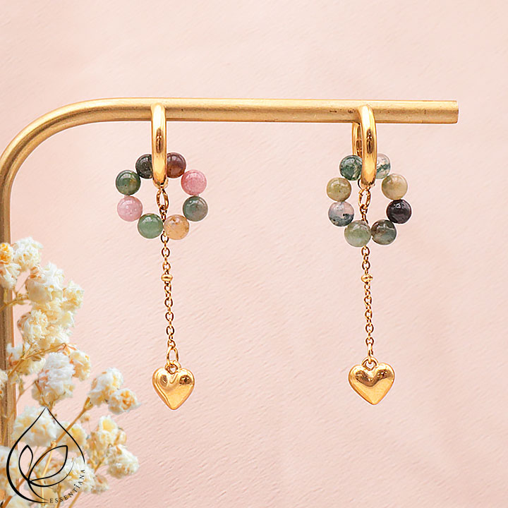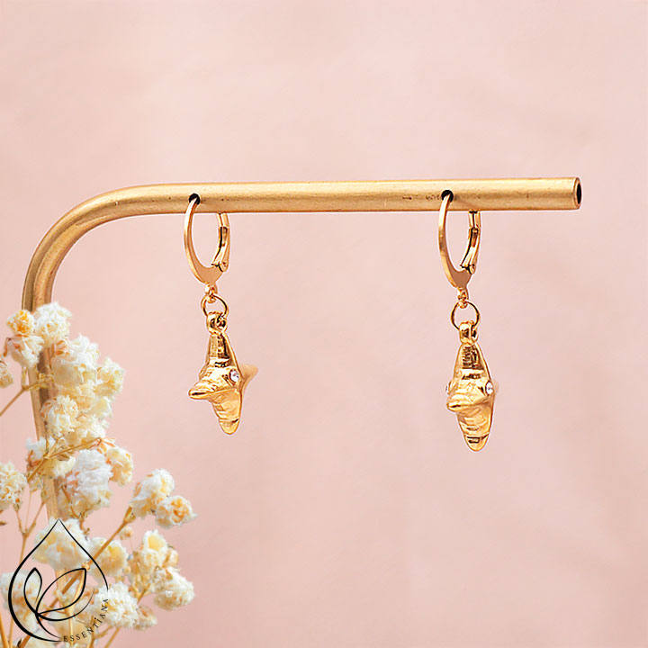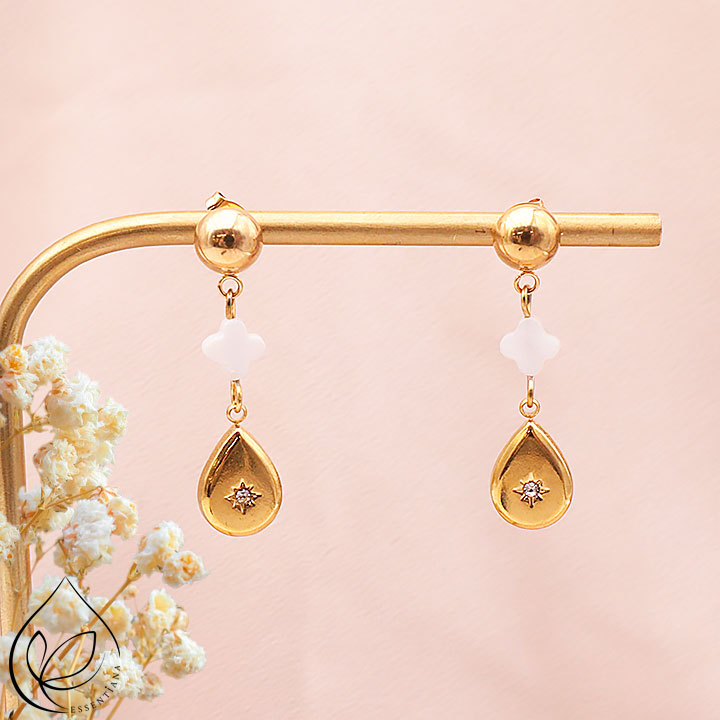 Golden Shimmer Mother-of-Pearl Earring, Zircon, Stainless Steel