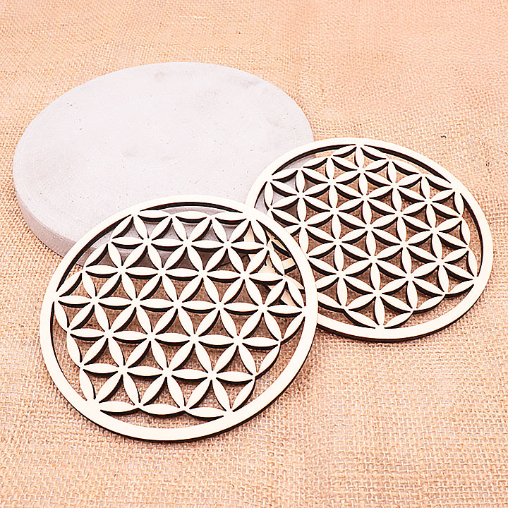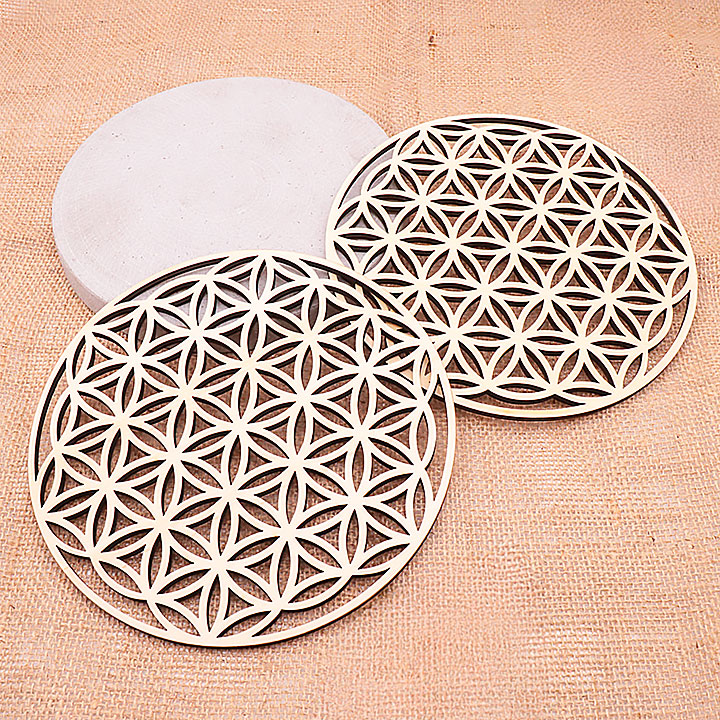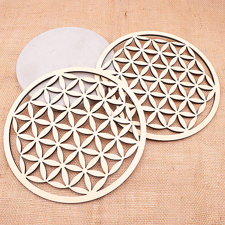 Wooden plate model 25 full hollow flower of life 150mm (set of 3 pieces)