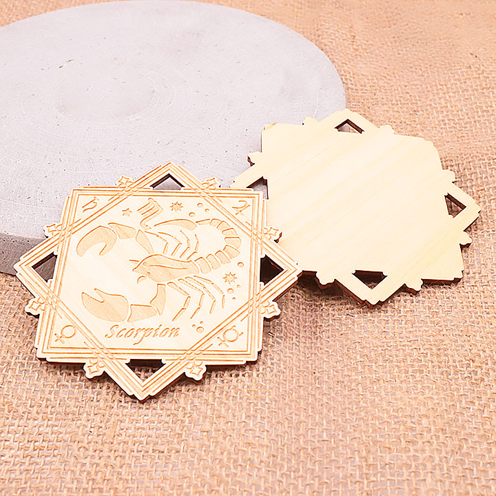 Wood plaque model 31 zodiac sign scorpio 100mm (set 3 pieces)