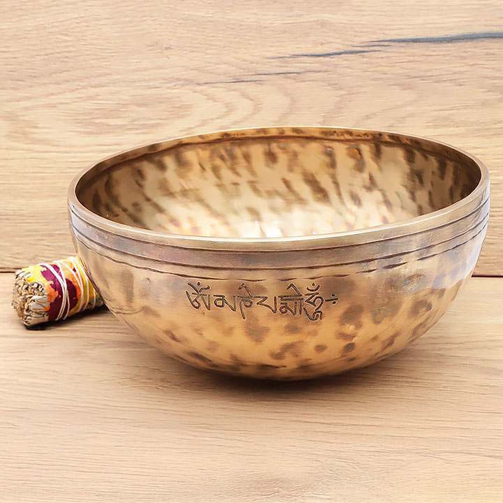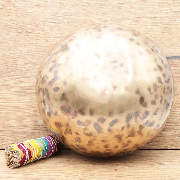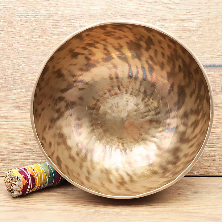 *Singing bowl handcrafted with a high-quality alloy for deep and lasting resonance.Composed of 98% pure bronze (72% copper, 26% tin); complemented by small traces of traditional metal alloys (iron, zinc, aluminum...) to improve the tone and sustain of the note.