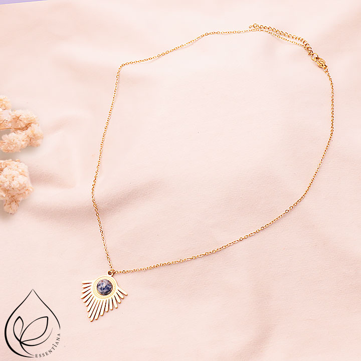 Necklace size: 44 to 49cm Stone size (in mm): approximately 8 Charm size (in mm): approximately 24x27 Metal: Stainless Steel. ✔ Inox 304 – Professional quality Our jewelry is made from 304 stainless steel, the global reference for durable and hypoallergenic jewelry. This alloy guarantees shine, resistance, and comfort for everyday wear. *To preserve your jewelry, avoid contact with water.