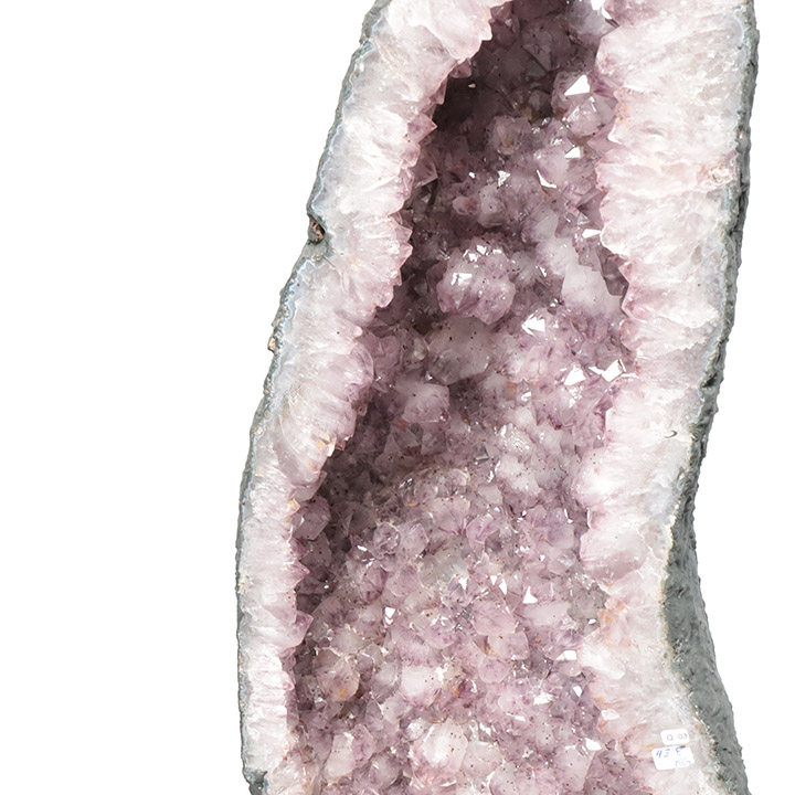 Type: Parts Numbered - Geode Amethyst Cathedral Pierre(s) : Amethyst Color: Violet / Transparent. Dimension (in mm): 755*320. Weight: 43360g. Quality: AB = Standard. Contractual photo