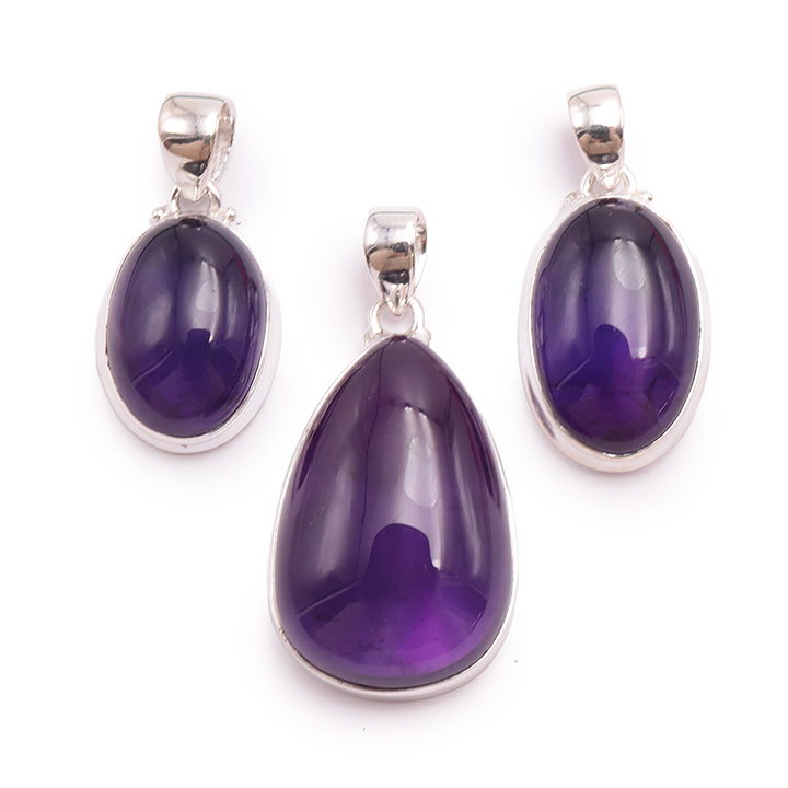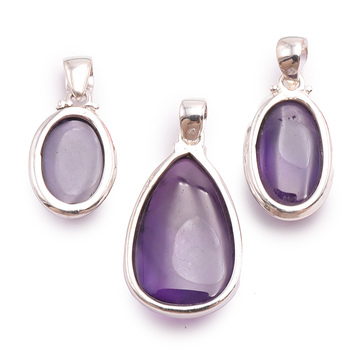 Type: Attendants - Pendants Silver 925 Pierre : Amethyst Batch weight : 22.77g. Number of pendants in the set: 3 Smallest pendant size (without bélière): 19mm. Largest pendant size (without bélière): 29mm. Color(s): Violet / Transparent. Quality : AAA = Best possible quality.