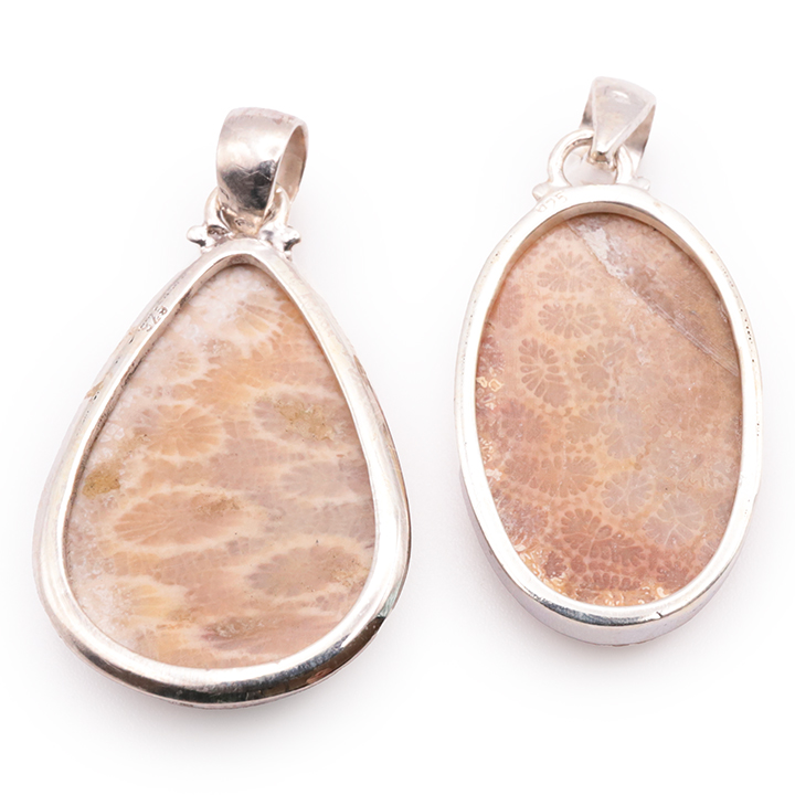 Type : Pendants Silver 925 - 925 silver and gold - Jewelry - 925 Silver Fossil Coral Pendants - -