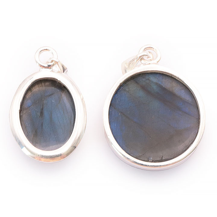 Category(ies) : Attendants - Pendants Silver 925 Pierre(s) : Labradorite Batch weight: 18.02g. Number of pendants in the set: 2. Size of smallest pendant (without strap) : 21mm Size of largest pendant (without strap) : 23mm Color(s) : Black / Reflections / Blue Color(s) : Black / Reflections / Blue Quality: AAA = Best possible quality