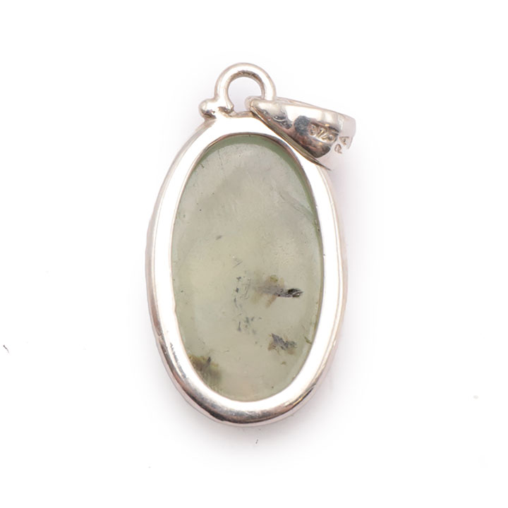 Type: Attendants - Pendants Silver 925 Pierre : Prehnite Batch weight : 13.66g. Pendant size (without bangle) (in mm) : 19*31 Color(s) : Green / Transparent / Black. Quality: AA = Excellent