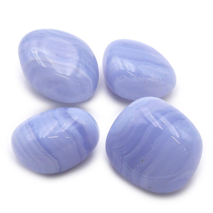 Type: Stones Rolled Pierre(s) : Calcedony Blue Dimensions (in mm): 20 - 40. Color: Blue/White. Quality: AAA = Best possible quality Number of stones in the batch (approx.): *Stones may vary in size from 17 to 43mm