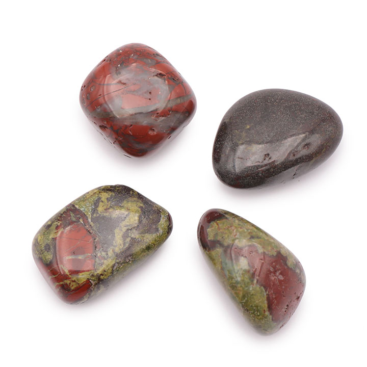 Type: Stones Rolled Pierre(s) : Blood Jasper de Dragon Dimensions (in mm): 30 to 40. Color: Green / Red / Black. Quality: AA = Very High. Number of stones in the batch (approx.): 6 to 11 *Stones may vary in size from 27 to 43mm