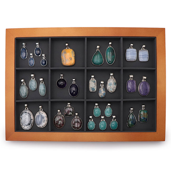 This display can contain pendants, bracelets, tumbled stones, etc...
