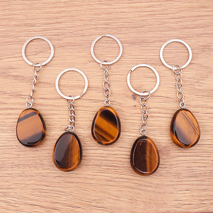 Tiger Eye Rolled Stone Keyring A (set of 5 pieces)