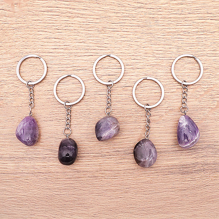 Amethyst tumbled stone keychain Brazil A (set of 5 pieces)