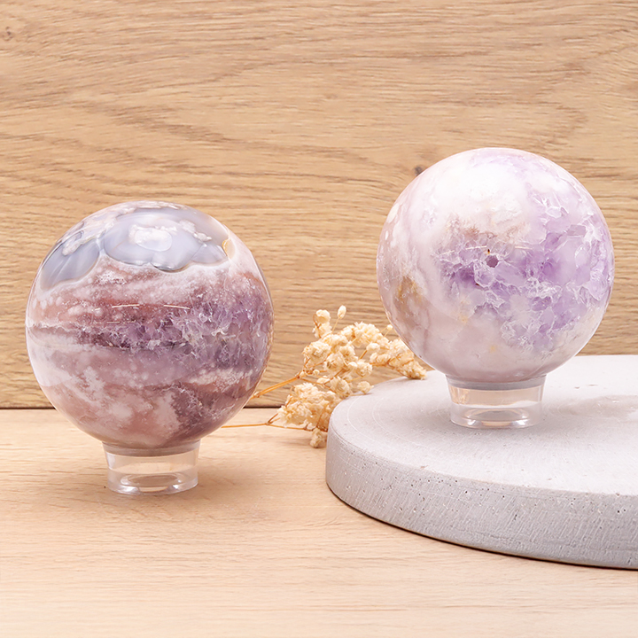 Cherry blossom agate sphere on pink amethyst AA+ 70 to 80mm (1 piece)