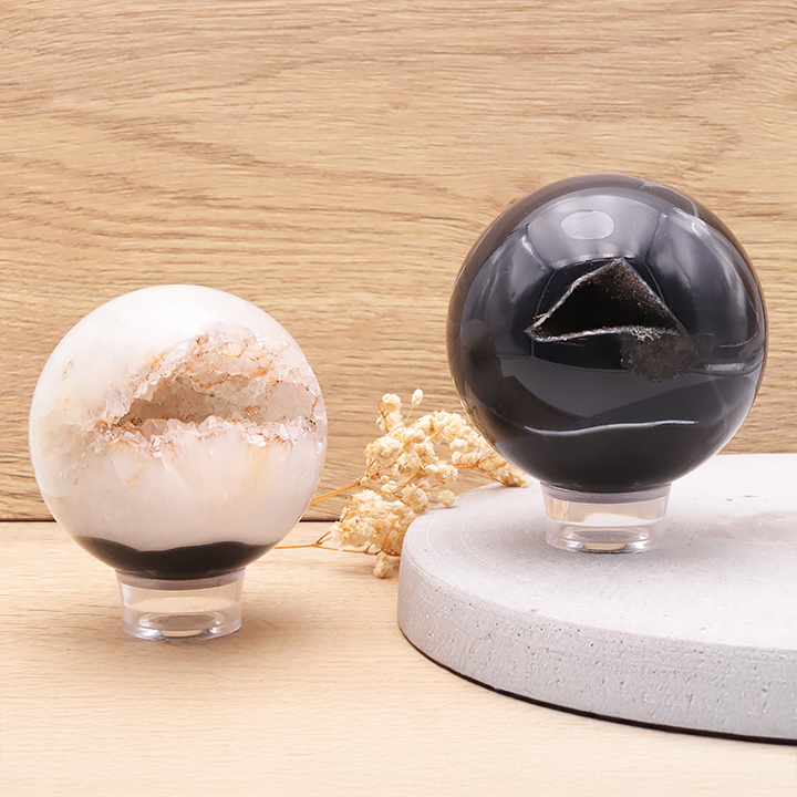 Crystalized Black Agate Sphere AA 70 to 80mm (1 set)