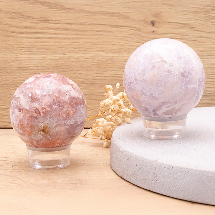 Cherry blossom agate sphere on pink amethyst AA+ 50 to 60mm (1 piece)