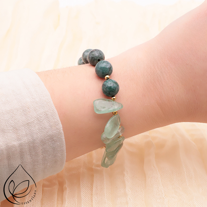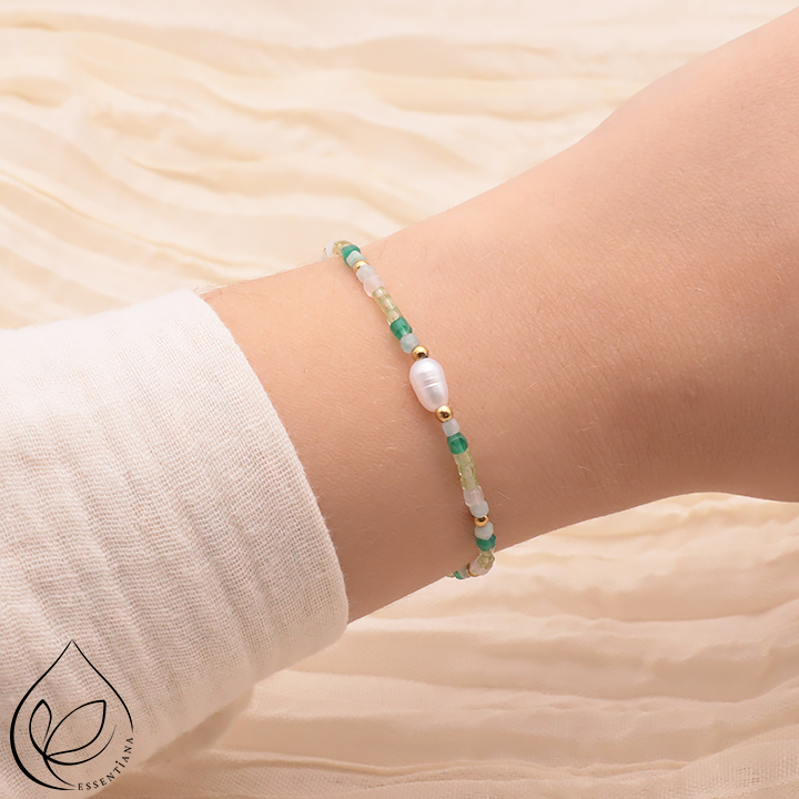 Bracelet Vaya gold freshwater pearl, green agate A