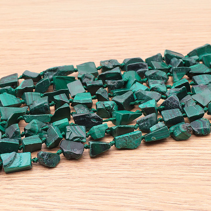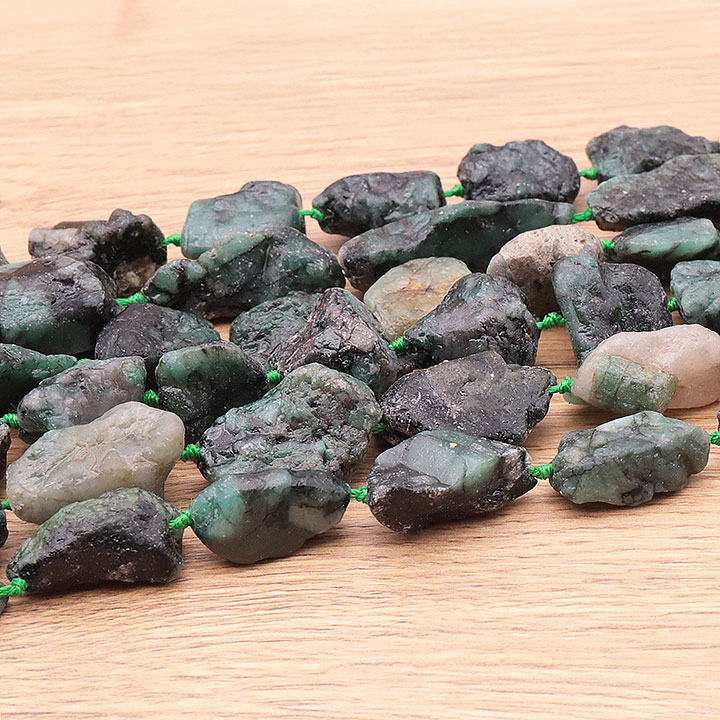 String of raw stone beads 06 x 15mm crystallized green tourmaline A