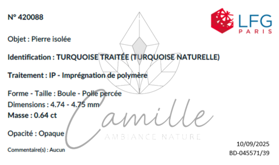 These reports are issued by the LFG from Paris following analysis of certain stone samples we regularly entrust to them.